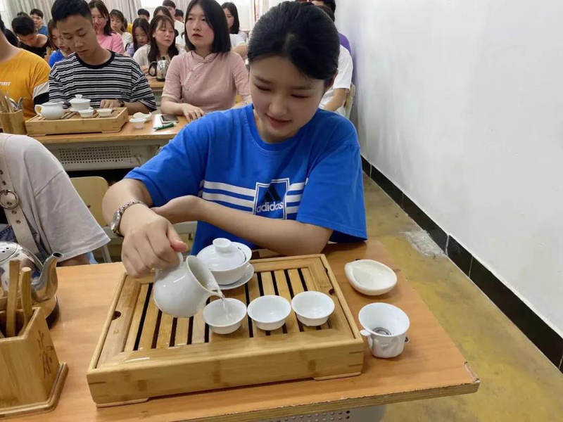 此次课程围绕茶艺理论知识和实操技巧进行教学,引导学生在茶文化知识中窥见祖国传统文化的广博,在礼仪学习中明白知止与谦逊,在冲泡实践中懂得规矩与包容,在调饮制作中理解传承与创新。