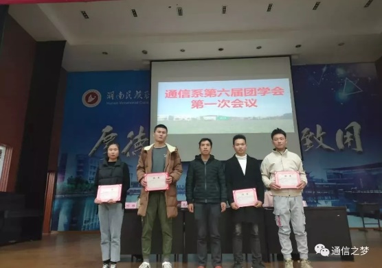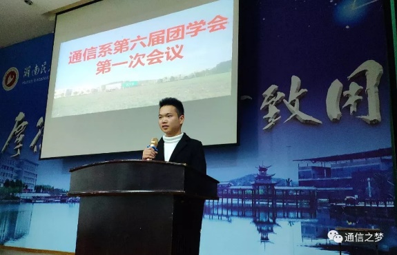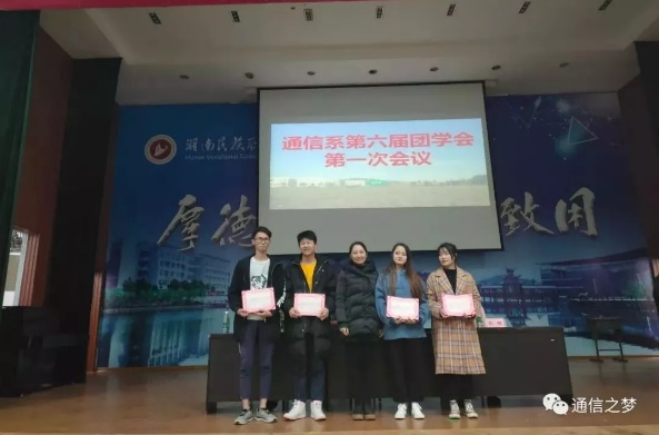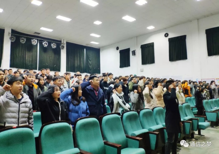 2019年11月28日通信工程公司在炎培楼演播厅召开第六届团学干部大会。党总支副书记庞代国老师,分管教学工作副主任李亚兰老师,学工办主任熊樱老师,团总支何维老师出席会议,全体团学干部与部分班干部代表参加了大会。