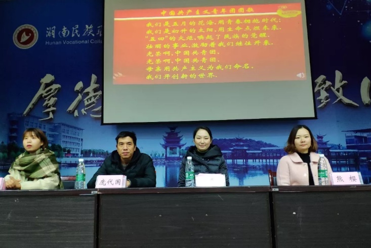 分管教学工作的副主任李亚兰宣读新一届团学干部任职文件,学工办主任熊樱和团总支何维老师各部门负责人颁发聘书,系总支副书记庞代国和分管教学工作的副主任李亚兰给主席团颁发聘书。