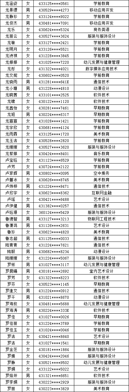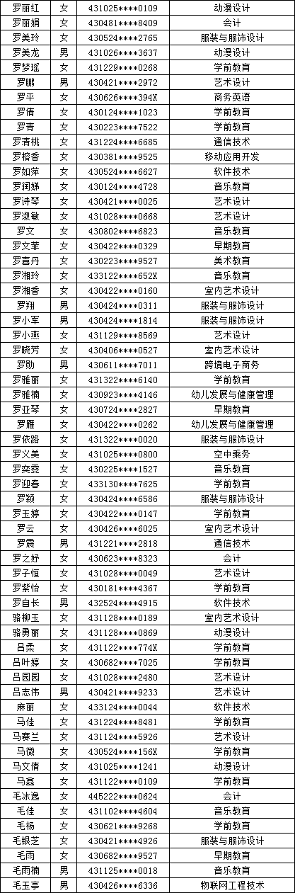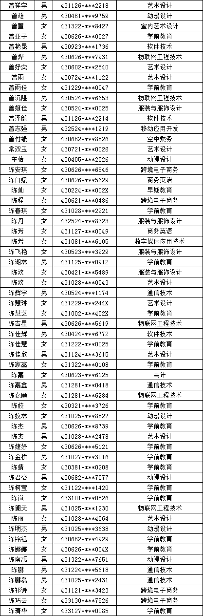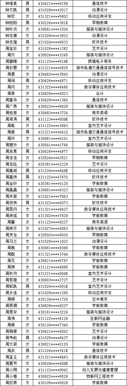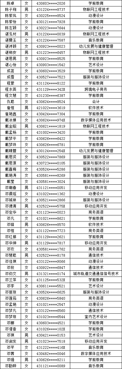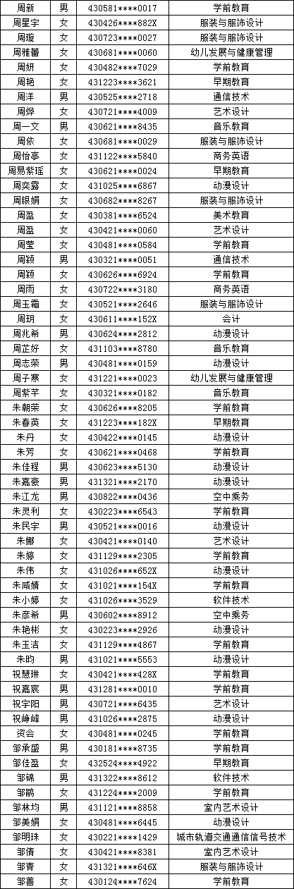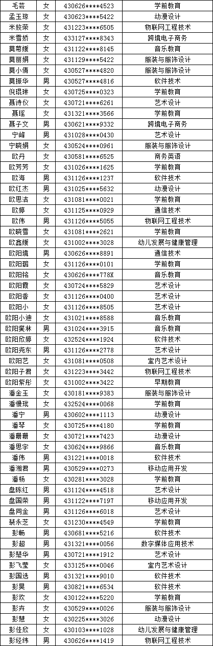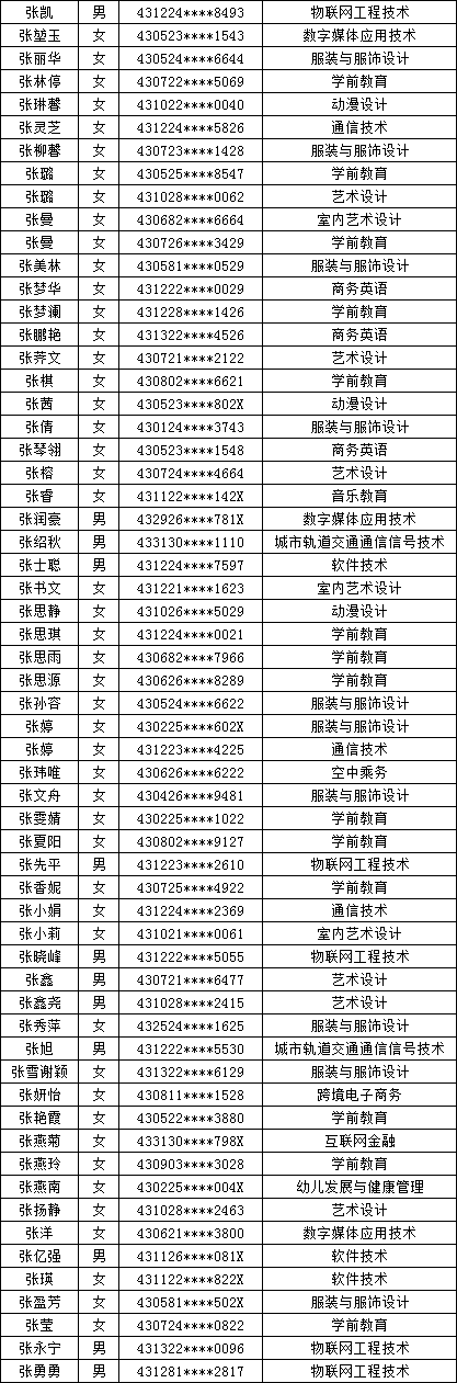 四、单招拟录取名单公示