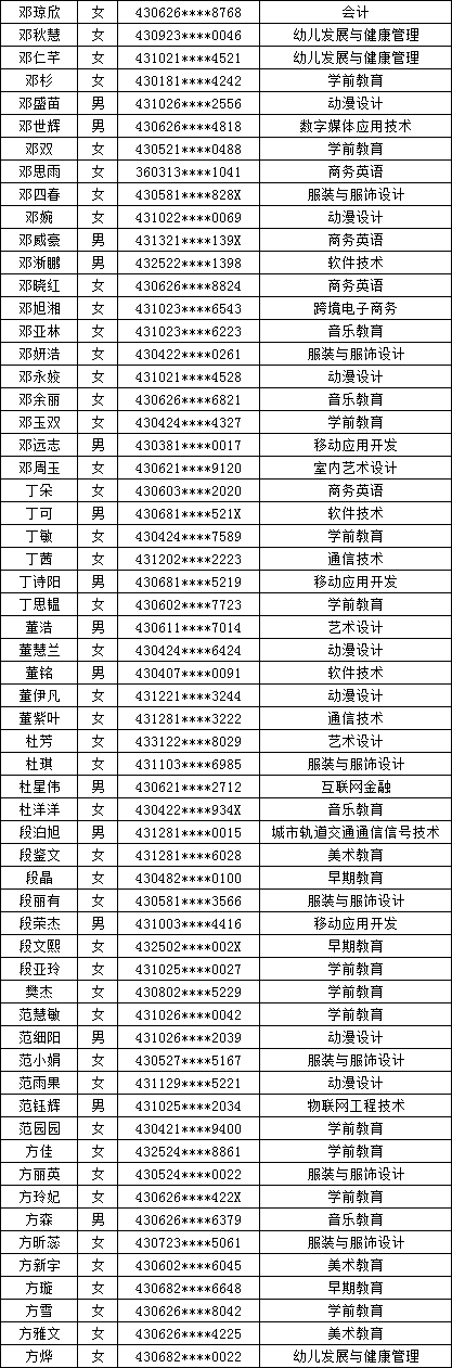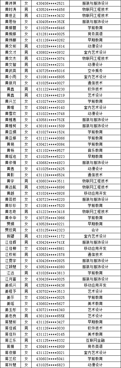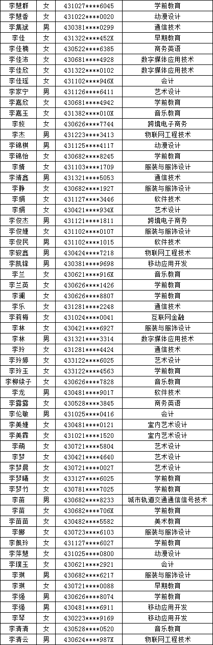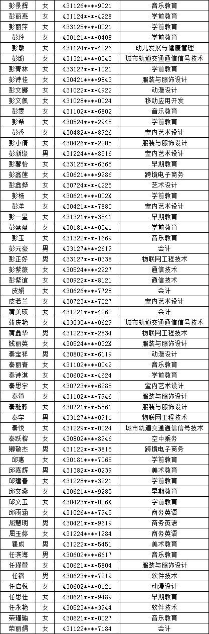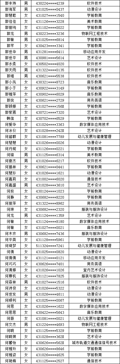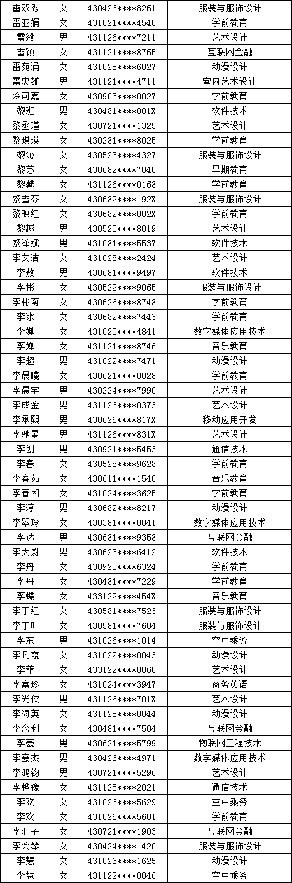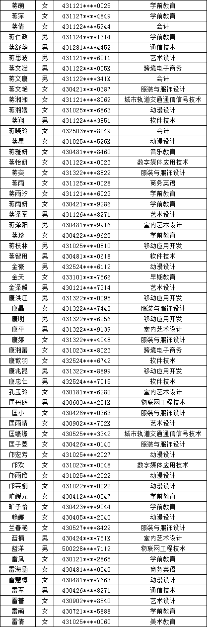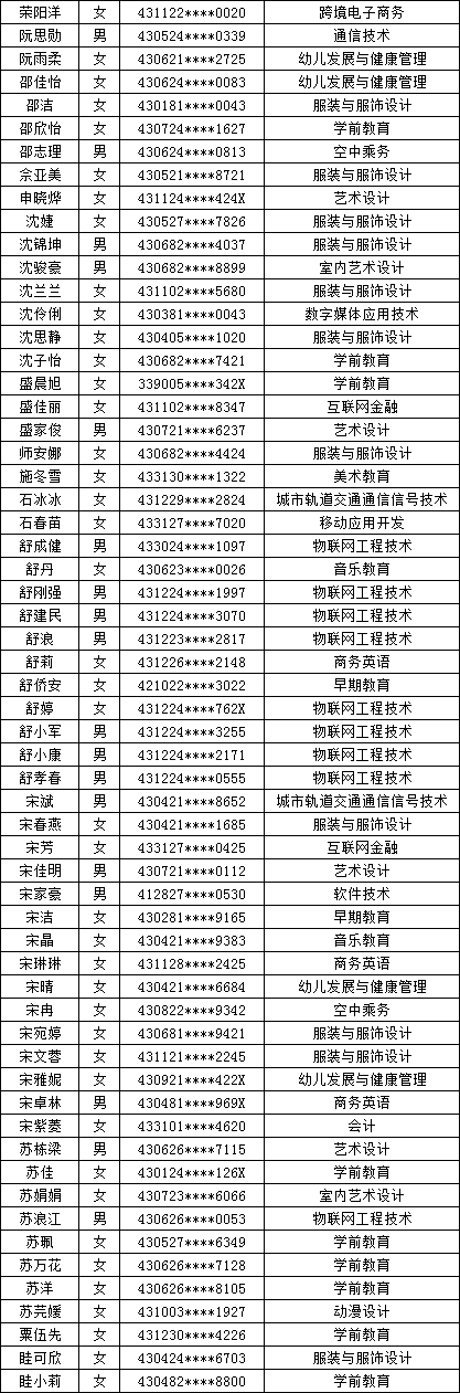 四、单招拟录取名单公示