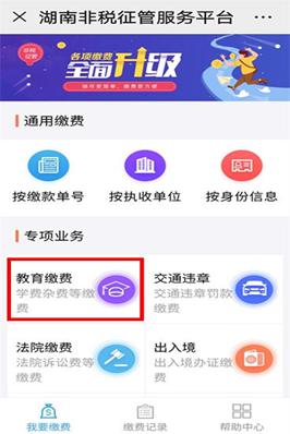 第二步:点击"在线缴费"或"湖南非税"。
