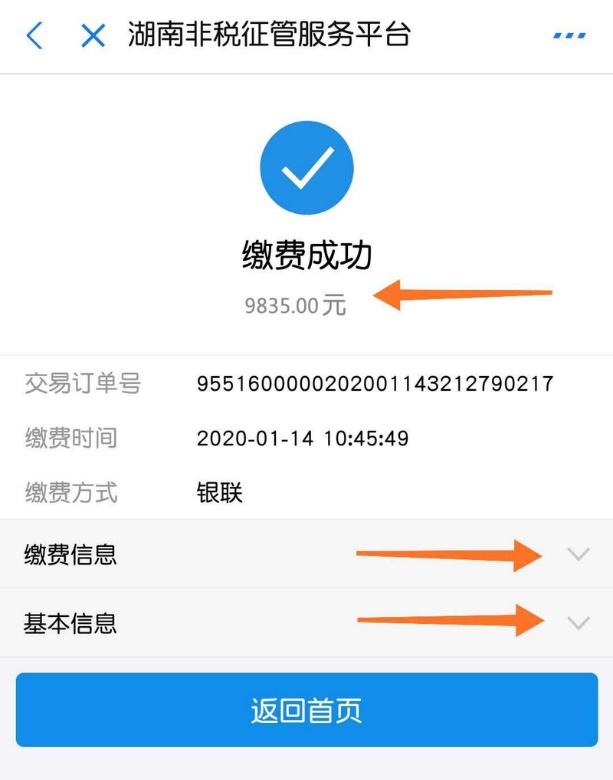 第七步:缴费成功后,点击"缴费信息""基本信息",并截图保存;