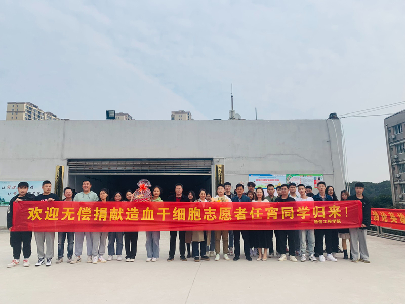 27日下午,院长张云,副院长李亚兰、李愈,学工办主任熊樱,辅导员及同学来到公司门口迎接任宵归来。任宵说:“希望通过自己的捐献,能带动更多人加入到造血干细胞志愿者行列中来,壮大这支爱心队伍,使更多的人得到帮助”。