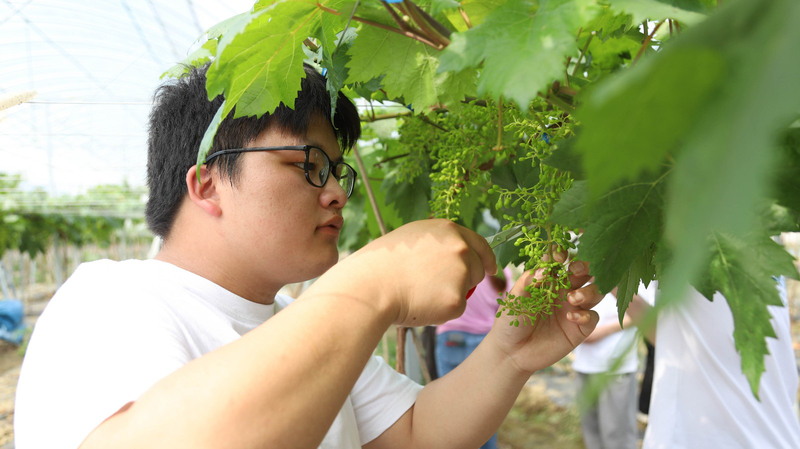 劳动志愿服务彰显青春力量。劳动志愿者们有组织有纪律地帮助当地村民进行农事劳作,修剪葡萄藤、采摘辣椒、整理地膜,干得不亦乐乎。