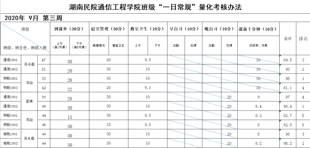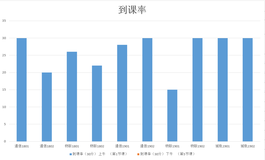 同时通信1801班、通信1902班、物联1902班、城轨1901班和城轨1902班到课率良好,没有扣分现象。