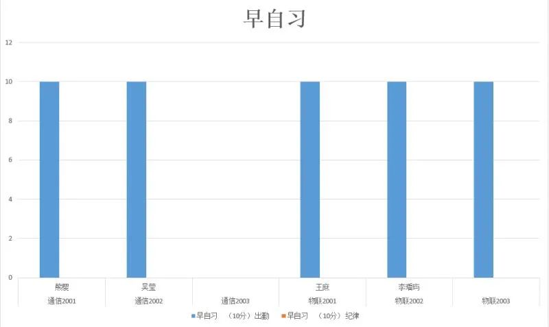 从表中可以看出各班早晚自习无扣分现象,表现很好,希望同学们再接再厉。