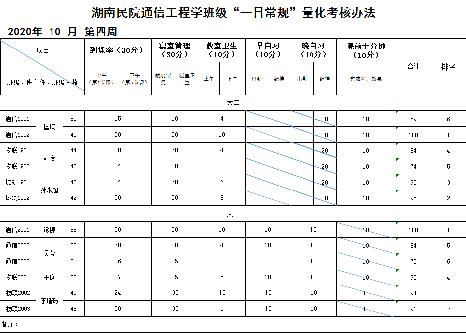 耕耘今天,收获明天 |第八周班级考核评分表