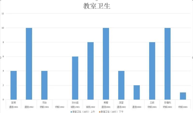 从表中可以看出,通信1901、物联1901、城轨1901、1902、通信2002、2003、物联2001、物联2003有扣分情况,其他班级表现良好。希望各班辅导员和卫生委员加强管理,继续保持教室卫生,让教室更加干净整洁,有个良好的学习氛围。