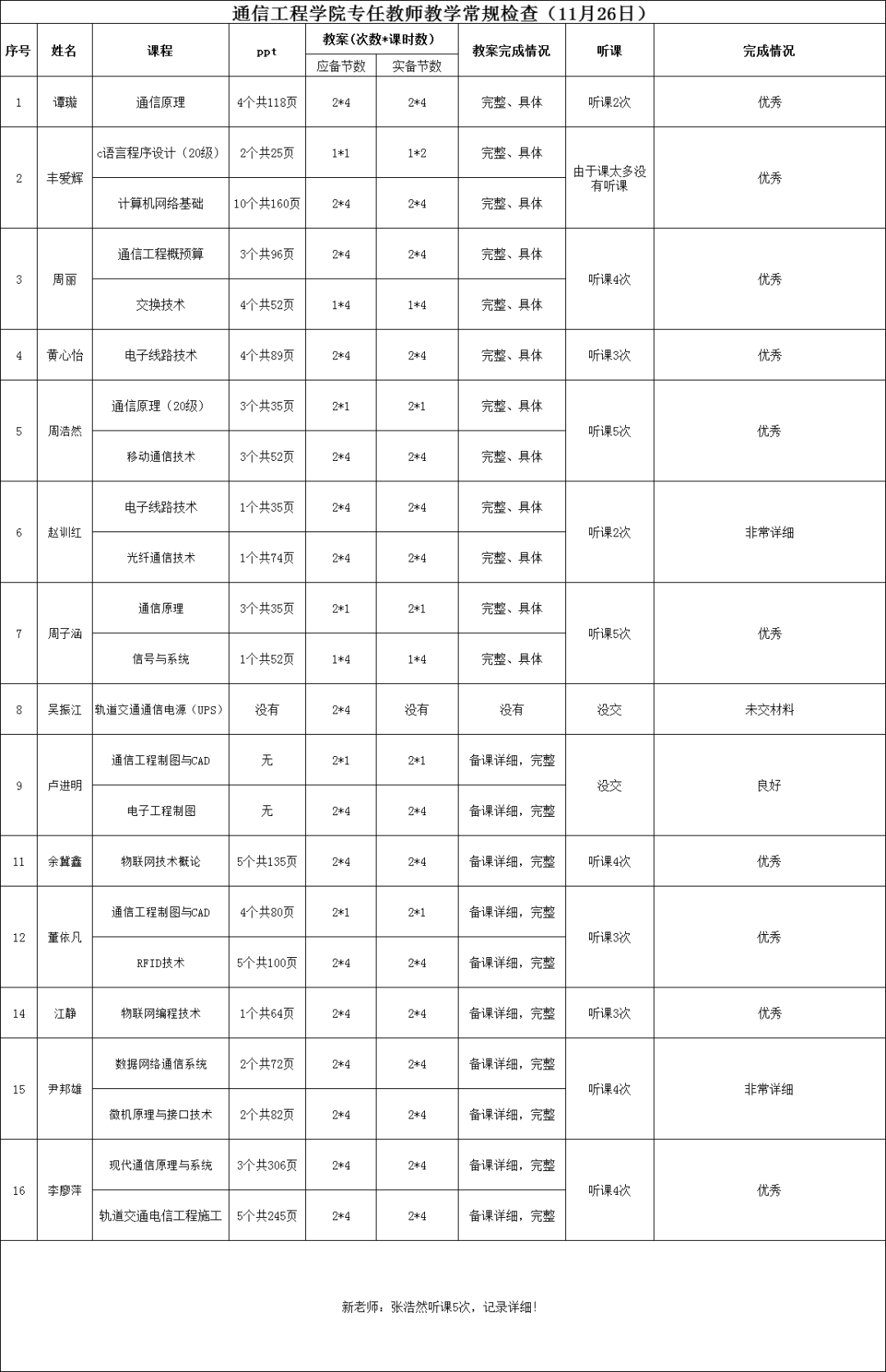 ​抓常规,促规范,共发展|第13周超星学习通检查暨11月份教案检查情况公示