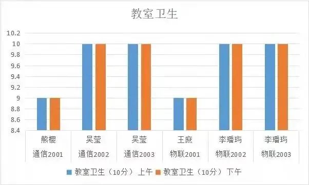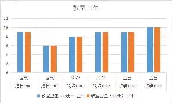 从表中可以看出,通信1901班、通信1902班、物联1901班、物联1902班、城轨1901班、通信2001班、物联2001班扣分情况有待提高,其他班级表现良好。希望各班辅导员和卫生委员加强管理,继续保持教室卫生,让教室更加干净整洁,有个好的学习氛围。