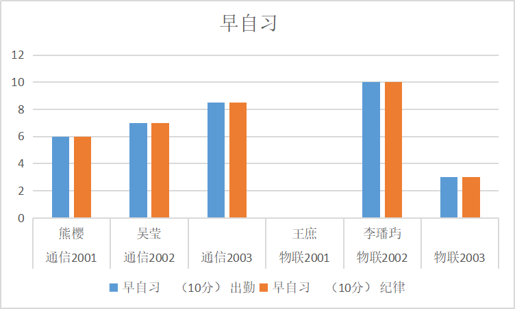 从表中可以看出,早自习通信2001班、通信2002班、通信2003班、物联2001班、物联2003班,希望辅导员及各班班长加强管理。