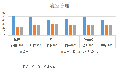 从表中可以看出,各班这周表现得很好,通信1901班、通信1902班、物联1902班、城轨1901班、城轨1902班扣分情况有待提高,其他班级表现良好。希望各班辅导员和各班寝室长加强管理,督促到位。