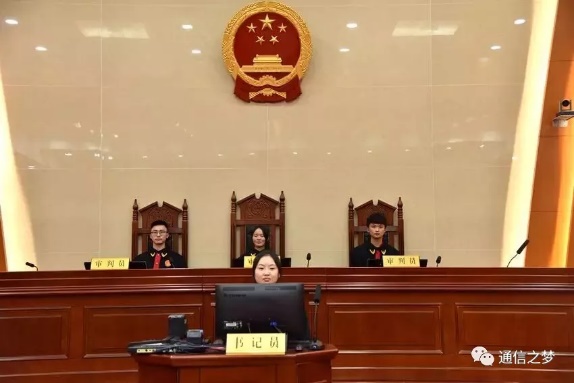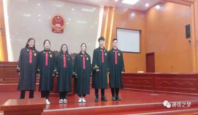 活动最后,通过公司的申请,同学们有了一次穿上法庭制服,模拟庭审现场的机会。