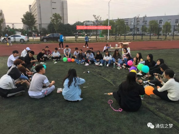 这次活动在田径场举行大家坐在一起,围成一个圈,开始了畅谈还有游戏:拍七令,气球蜈蚣,多人多足,筷子传纸杯等等